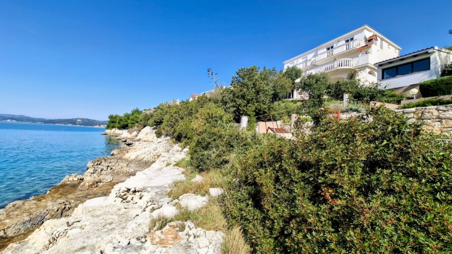 The apartment is situated in a quiet neighborhood in Okrug Donji on Čiovo island, only 30 meters from the sea and the nearest rocky beach. The historic Trogir Old Town, a UNESCO World Heritage site, is just 9 km away and easily accessible via two bridges, while Split Airport is conveniently located 14 km away.