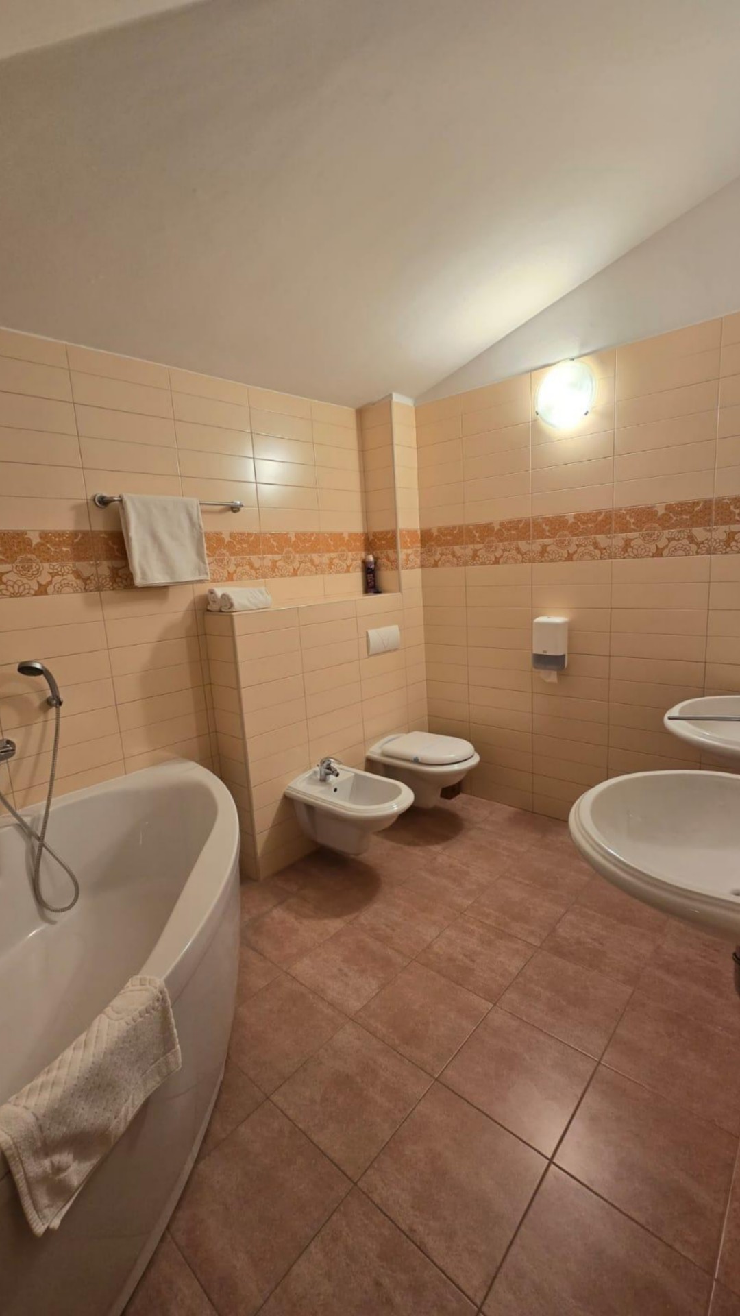 The apartment is fully air-conditioned and equipped with smart TV, Wi-Fi, and all essential household appliances, including electric stove, oven, dishwasher, stove, oven, refrigerator with freezer, capsule coffee machine, electric kettle, toaster, washing machine, and hair dryer. A baby cot and high chair are available upon request.
