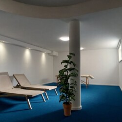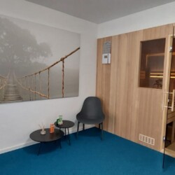 Guests at the luxurious Aura apartment enjoy exclusive access to a spacious 110m² communal heated pool, perfect for refreshing dips on warm summer days. Comfortable lounge chairs and stylish outdoor furniture surround the pool, inviting relaxation in a beautiful setting. The complex also features a sauna for unwinding and a barbecue area with an outdoor dining space for delightful meals under the open sky. To enhance the experience, guests can access a massage table, yoga mat, and SUP board on request.