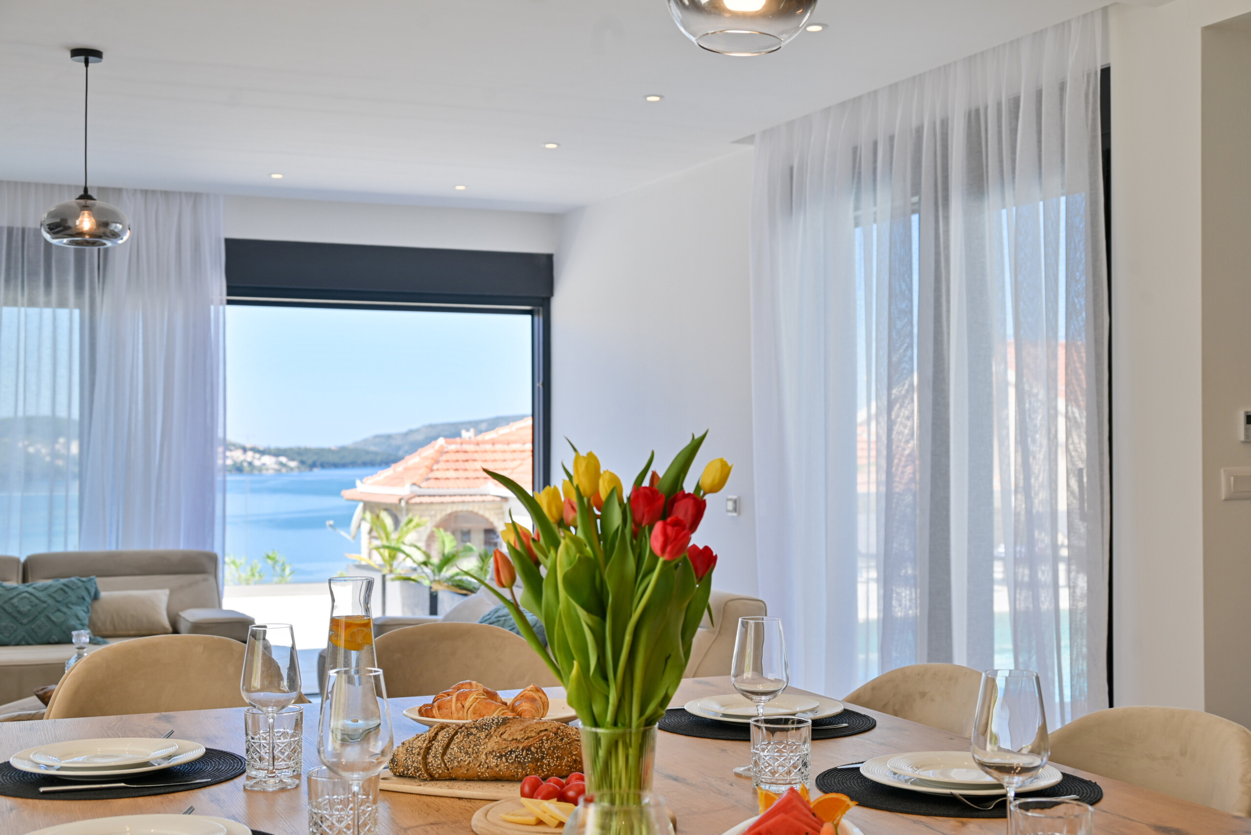 Villa Oasis is a luxury holiday retreat located in Trogir, perfectly positioned just a 5-minute drive from the UNESCO-listed Old Town Trogir and within walking distance of the beach. This contemporary and spacious villa provides everything needed for a perfect getaway, featuring superb sea views which will leave no one indifferent.